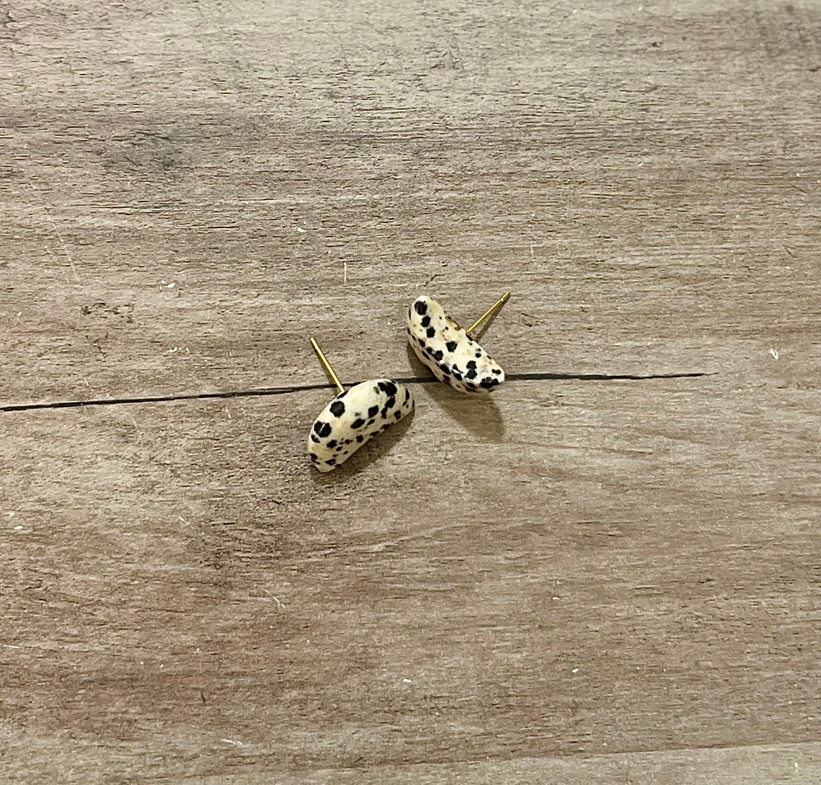 Dalmatian Jasper Crescent Stone Stud Earrings – Hypoallergenic