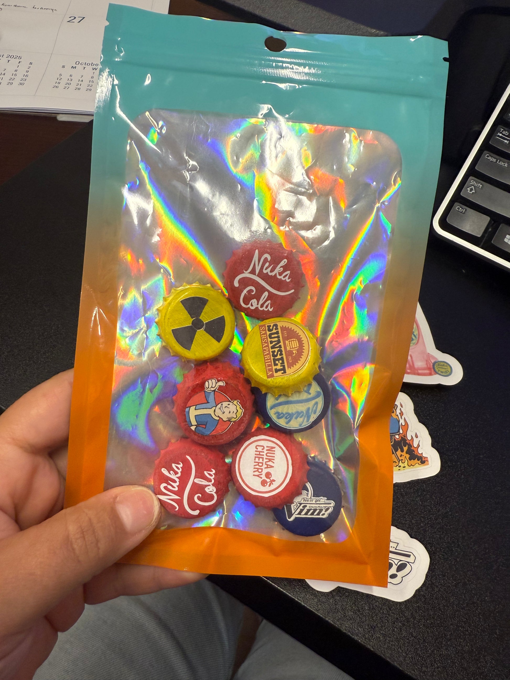 Inspired by the iconic aesthetic of post-apocalyptic gaming, these collectible bottle caps deliver authentic retro charm.