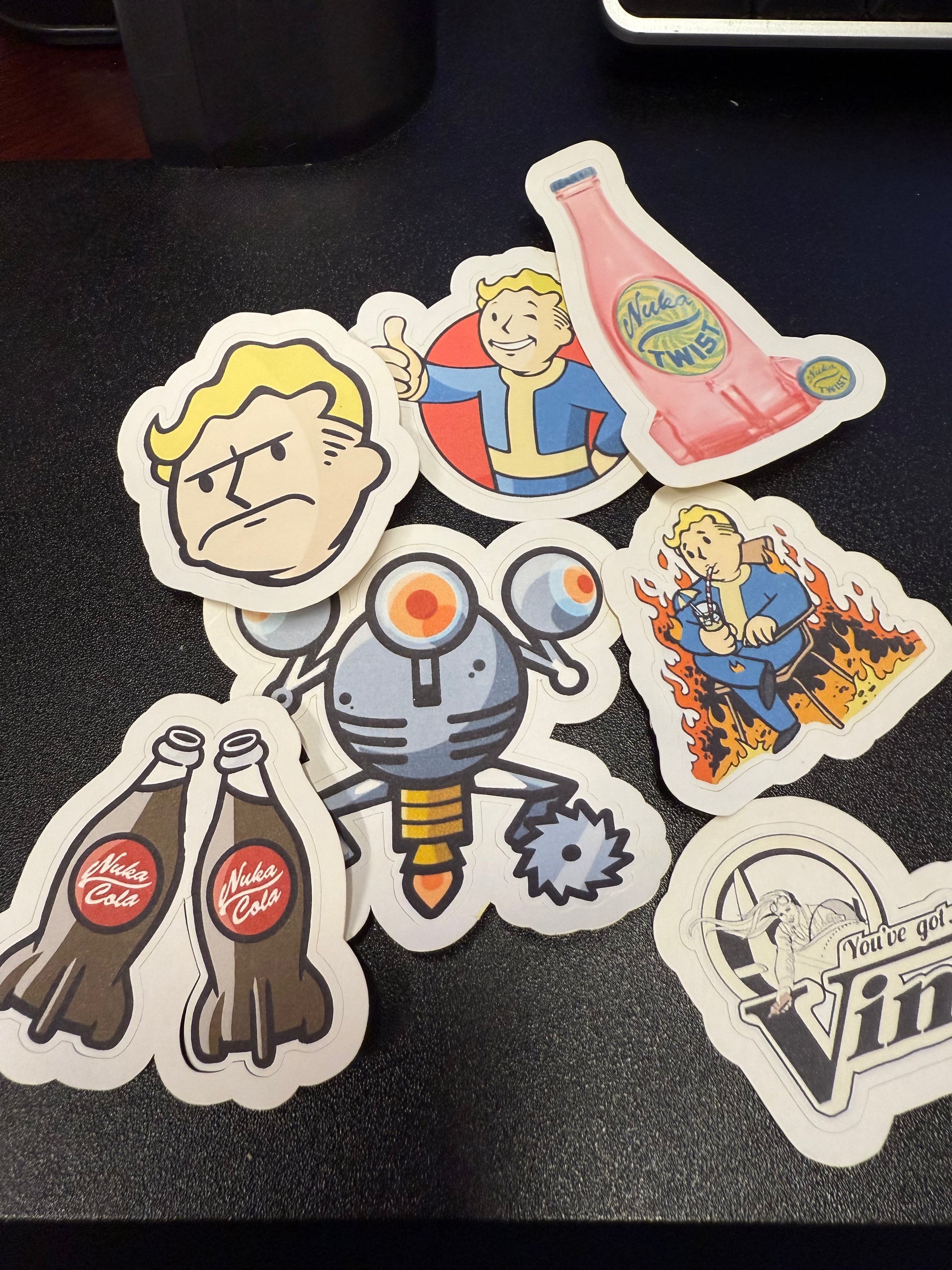 Bring post-apocalyptic flair to your collection with this Fallout-inspired sticker set. Featuring iconic imagery from the beloved franchise, each sticker captures the retro-futuristic aesthetic and dark humor that define the series.