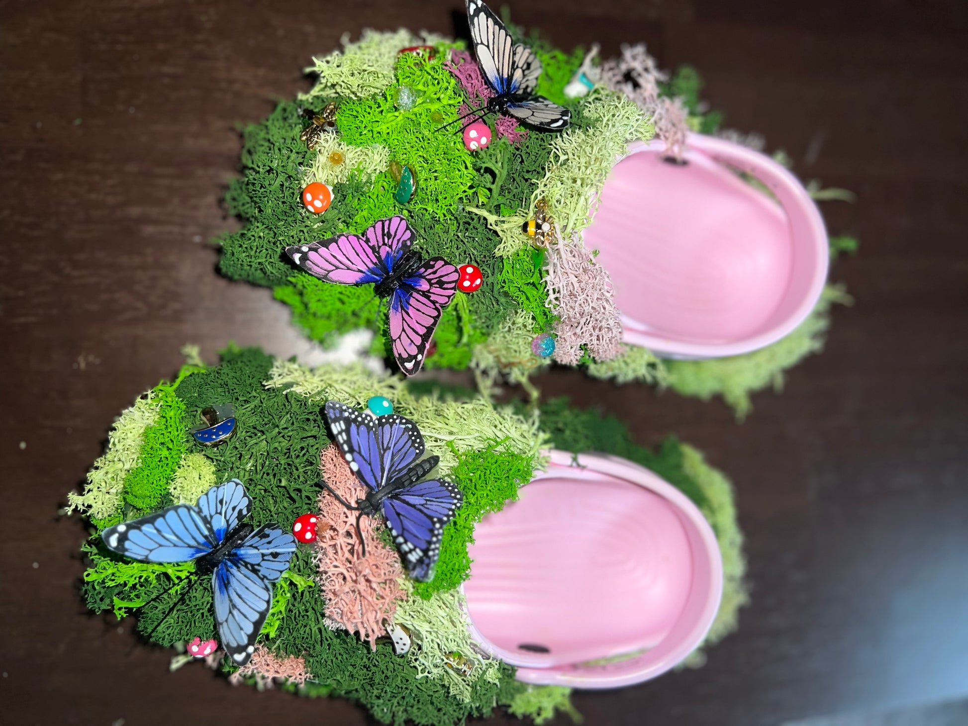 Each pair is meticulously hand-decorated with vibrant charms inspired by the garden: delicate mushrooms, buzzing bees, fluttering butterflies, and blooming flowers. Crafted over several hours with premium materials and artisan care, these Crocs transform everyday footwear into a statement piece that celebrates your unique personality.