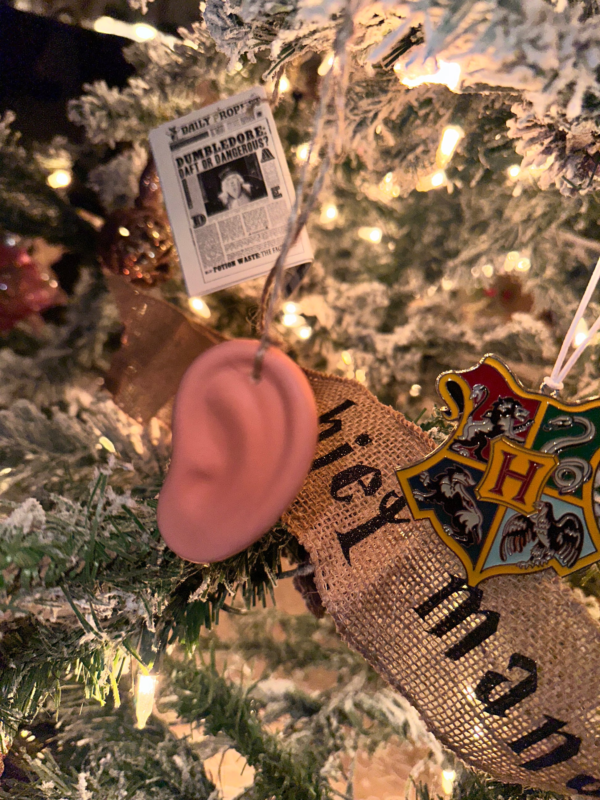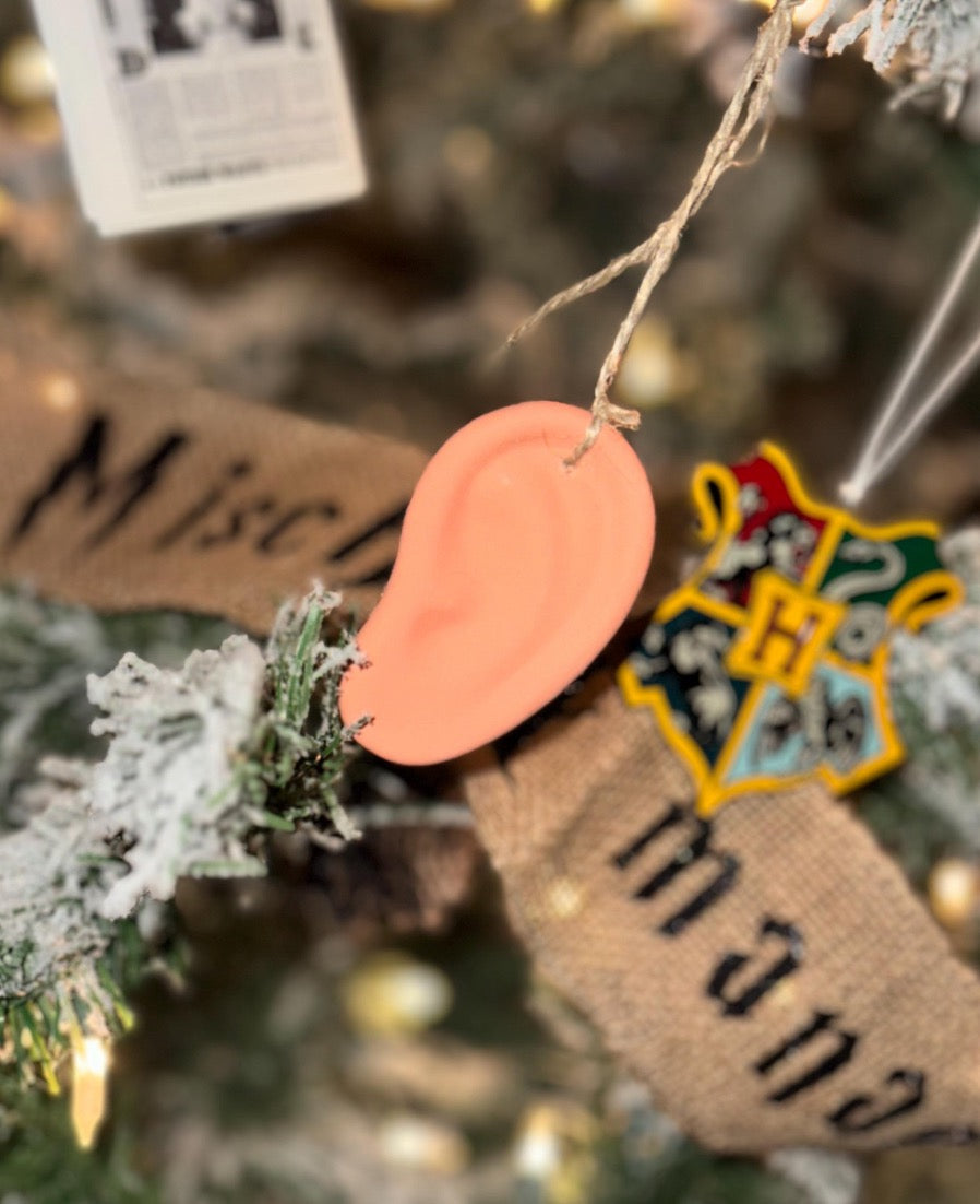 Elevate your festive collection with this enchanting ear ornament, meticulously crafted for fans of magical fantasy worlds. Featuring intricate detailing that captures the wonder and whimsy of wizarding aesthetics, this piece brings a touch of spellbinding charm to any holiday display.