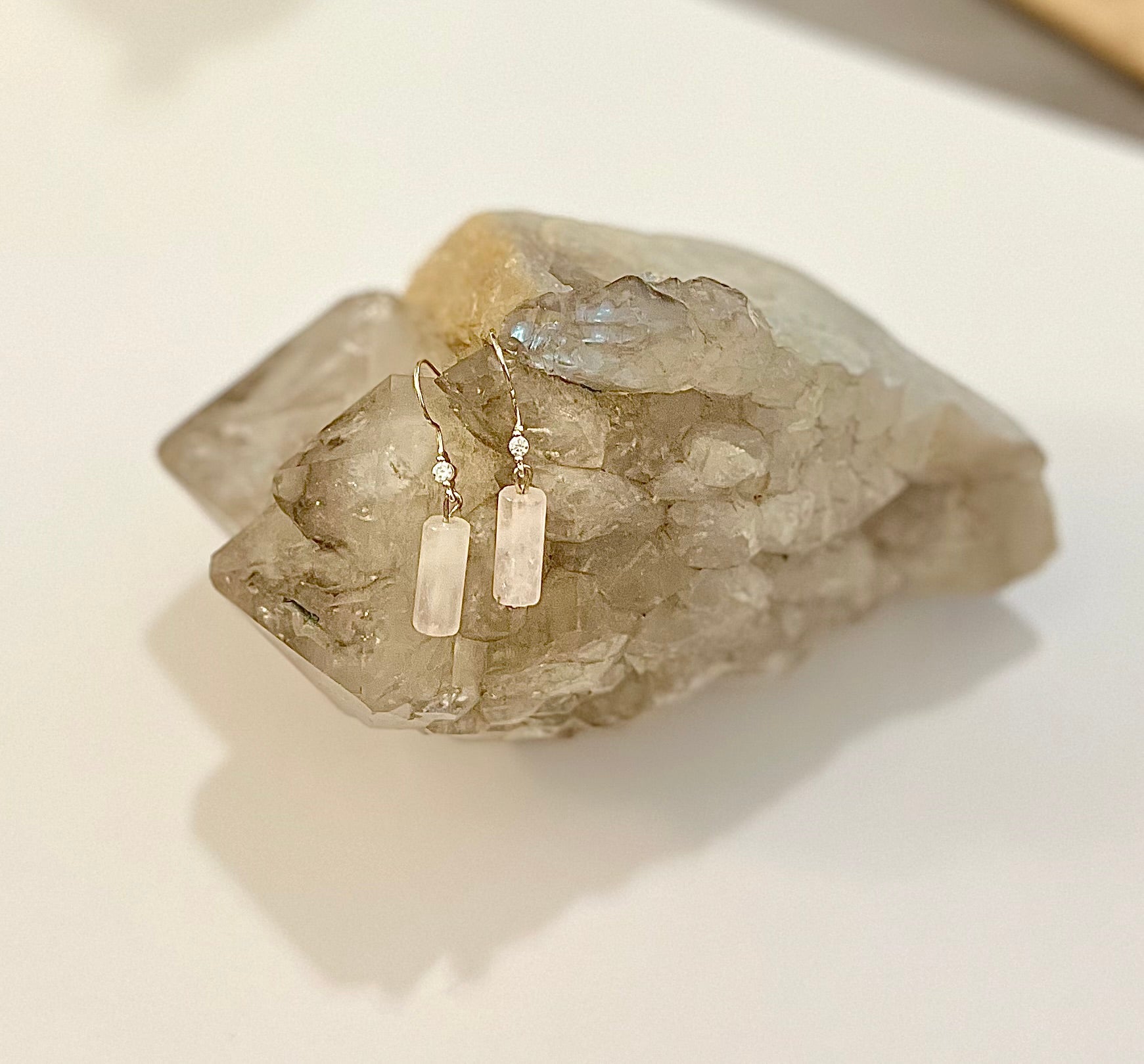 Rose quartz, known as the stone of love and inner peace, brings gentle feminine energy to this clean, modern silhouette. Lightweight and graceful, these earrings are perfect for daily wear or adding a touch of quiet beauty to special moments.