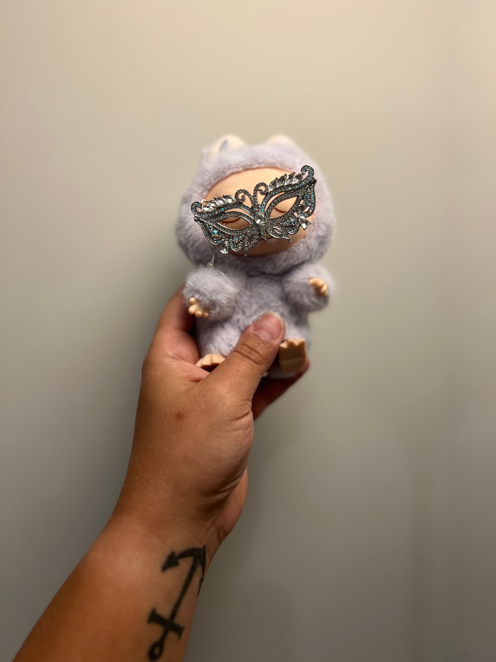 Give your Bubu plush a glamorous makeover with this dazzling masquerade mask! Adorned with shimmering rhinestones and elegant filigree detailing, this mini mask is the perfect accessory for parties, photoshoots, or simply adding a touch of sparkle to your collection. Designed to fit Bubu plush perfectly, it adds charm and personality while staying lightweight and easy to put on or remove. Whether you’re styling for display or dressing up for fun, this sparkling mask will make your Bubu the star of the show!